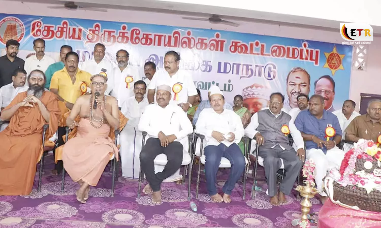 தமிழகத்தில் 6 லட்சத்து 36 ஆயிரம் கோவில்கள் உள்ளன. அந்த கோவில்கள் அந்தந்த அமைப்பு மூலம் நடந்து கொண்டிருக்கிறது. பூஜை முடிந்த பிறகு வழிபாடு செய்யும் போது அனைவருக்கும் வழிபடுவதற்கான உரிய வழிமுறை பின்பற்றப்பட வேண்டும். தஞ்சாவூர்: தஞ்சையில் இன்று தேசிய திருக்கோயில்கள் கூட்டமைப்பின் மாவட்ட ஆன்மீக மாநாடு நடைபெற்றது. இந்த மாநாட்டில் சூரியனார் கோயில் ஆதீனம் 28-வது குருமகா சந்நிதானம் ஸ்ரீலஸ்ரீ மகாலிங்க தேசிக பரமாச்சாரிய சுவாமிகள் தவத்திரு சிவநந்தி அடிகாளார் கலந்து கொண்டு பேசினார். முன்னதாக அவர் நிருபர்களுக்கு அளித்த பேட்டியில் கூறியிருப்பதாவது ;- தமிழகத்தில் 6 லட்சத்து 36 ஆயிரம் கோவில்கள் உள்ளன. அந்த கோவில்கள் அந்தந்த அமைப்பு மூலம் நடந்து கொண்டிருக்கிறது. கோவில் என்பது தாயின் கருவறை போன்றது. அந்த கோவில் கருவறையில் பூஜை செய்வதற்கு தீட்சிதர்கள் தகுதி உடையவர்கள். பூஜை காலங்களில் அவர்களை பூஜை செய்வதற்கு அனுமதிக்க வேண்டும். பூஜை முடிந்த பிறகு வழிபாடு செய்யும் போது அனைவருக்கும் வழிபடுவதற்கான உரிய வழிமுறை பின்பற்றப்பட வேண்டும். தமிழகத்தில் 6-ல் 4 பாகம் நிலங்கள் ஆதீனத்திற்கும், திருக்கோவில்களுக்கும் உள்ள நிலங்கள் ஆகும். அவற்றிற்கு ஆர்.டி.ஆர். என்கிற உரிமை உண்டு. அந்த உரிமையின் பேரில் நஞ்சை, புஞ்சை நிலங்கள், அடிமனை வாடகை, தென்னை மர குத்தகை போன்ற பல வகையான நிலங்கள் உண்டு. அவற்றில் 90 சதவீதம் வருவாய் வரக்கூடிய ரீதியில் தான் உள்ளது. பெரும்பாலான கோவில்கள் அதற்குரிய இடத்தில் தான் கட்டப்பட்டுள்ளது. சில கோவில்கள் புறம்போக்கு இடத்தில் கட்டப்பட்டுள்ளன. மேலும் பயன்படாத இடத்தில் கட்டப்படும் போது அதற்கு கோர்ட் அனுமதியுடன் தான் அரசு அவற்றிற்கான நடவடிக்கை எடுத்து வருகிறது. இன்று நடைபெற்ற மாநாட்டில் கோவில்களை சிறந்த முறையில் வழிநடத்தி கொண்டு செல்ல வேண்டும். இந்து கோவில்களான சிவம், வைணவம், சைவம், சமணம், பவுத்தம் போன்ற கோவில்களுக்கு ஒரு யூனிட் மின்சாரத்திற்கு ரூ.10 வரையிலும் கட்டணம் வாங்கப்பட்டு வருகிறது. அவற்றை குறைத்து கட்டணம் வசூலிக்க அரசை வலியுறுத்தி தீர்மானம் நிறைவேற்றப்பட்டுள்ளது. 1947-ம் ஆண்டு சுதந்திரம் பெறப்படும் போது யாரிடம் இருந்து சுதந்திரம் பெறுவது என்ற கருத்தானது வெளிப்பட்டு கொண்டிருந்தது. அப்போது சோழவள நாட்டிலே திருவாவடுதுறை ஆதீனம் மூலமாக பெறலாம் என்கிற யோசனையை ராஜகோபாலாச்சாரியார் முன்வைக்கிறார். 70 ஆண்டுகளாக நேருவின் அலகாபாத் இல்லத்தில் இருந்த செங்கோலை நாடாளுமன்றத்தில் பிரதமர் மோடி வைத்து தமிழ் ஆதீனங்களுக்கும், தமிழ் சைவத்திற்கும் பெருமை சேர்த்துள்ளார். மத்தியில் கூட்டாட்சி தத்துவம், மாநிலத்