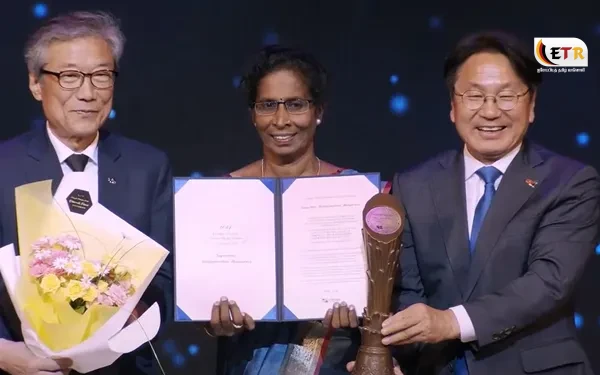இலங்கை இராணுவத்திடம் அனைத்தையும் இழந்த ஏராளமான பெண்களுக்கு தைரியம் மற்றும் நம்பிக்கையின் அடையாளமாக சுகந்தினி மதியமுதன் திகழ்வதாக புகழாரம் சூட்டப்பட்டது. இந்நிகழ்வு கடந்த 19ஆம் திகதி தென்கொரியாவில் நடைபெற்றது.