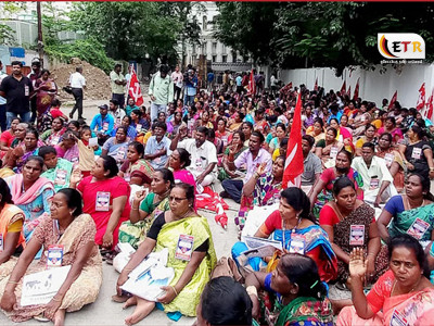 சென்னையில் தூய்மை பணியாளர்கள் போராட்டம்.