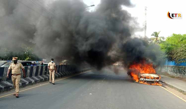 குன்னூர் மேட்டுப்பாளையம் நெடுஞ்சாலையில் கார் திடீரென தீப்பற்றி எரிந்ததால் பரபரப்பு ஏற்பட்டுள்ளது. குன்னூரை சேர்ந்த தர்மராஜ், தனது மனைவி, குழந்தைகளுடன் பெங்களூரு சென்று திரும்பிய போது விபத்து ஏற்பட்டுள்ளது. தீப்பற்றிய காரை சாலையோரம் நிறுத்திவிட்டு தர்மராஜ், அவரது குடும்பத்துடன் வெளியேறியதால் உயிர் சேதம் தவிர்க்கப்பட்டுள்ளது.
