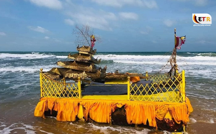 பௌத்த கொடிகளுடன் குறித்த தெப்பம் கரையொதுங்கியுள்ளதாக எமது பிராந்திய செய்தியாளர் தெரிவித்துள்ளார்.