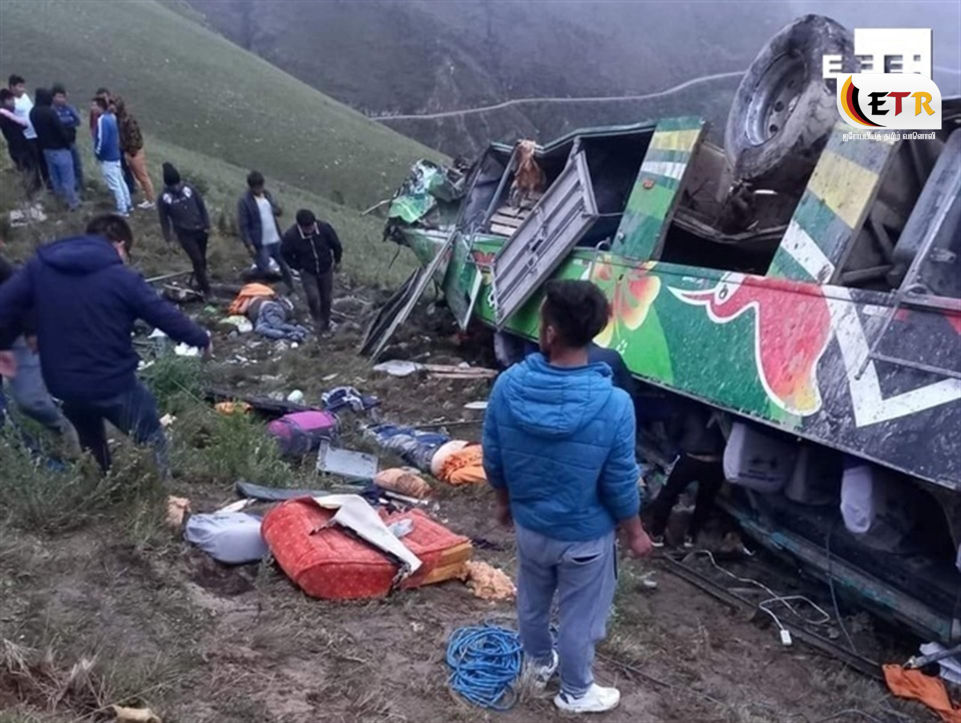 அவர்களுக்கு தீவிர சிகிச்சை அளிக்கப்பட்டு வருகிறது.பள்ளத்தாக்கில் பேருந்து அடையாளம் தெரியாத வகையில் நொறுங்கி கிடந்தது. உடல்கள் ஆங்காங்கே ரத்த வெள்ளத்தில் சிதறி கிடந்தன. இதனை பார்த்த சுற்று வட்டார மக்கள் அதிர்ச்சியில் உறைந்தனர். மேலும் விபத்து குறித்து காவல்துறை விசாரணை நடத்தி வருகின்றனர்.