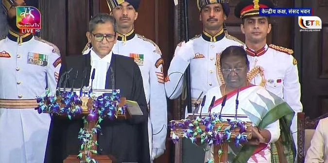 உச்சநீதிமன்ற தலைமை நீதிபதி முன்னிலையில் இந்தியாவின் 15ஆவது குடியரசுத் தலைவராக திரௌபதி முர்மு பதவியேற்றுக்கொண்டார்.