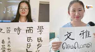 உலக தாய்மொழி தினத்தில் சீன மாணவிகள் வாழ்த்து..!!