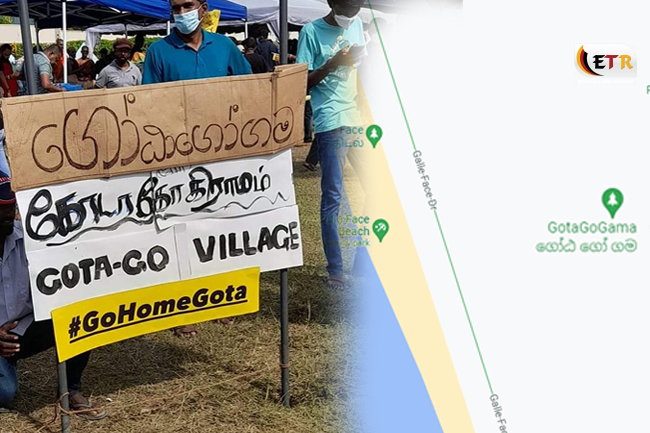 போராட்டத்தில் ஈடுபட்டிருப்பவர்களில் சிலர், கூடாரம் அமைத்து போராட்டத்தை தொடர்கின்றனர். இந்நிலையில், அவ்வாறு கூடாரம் அமைக்கப்பட்ட பகுதிக்கு “ ‘கோட்டா கோ கிராமம்’ ” என்று பெயர் சூட்டி, அறிவித்தல் பலகையொன்றையும் நாட்டியுள்ளனர்.