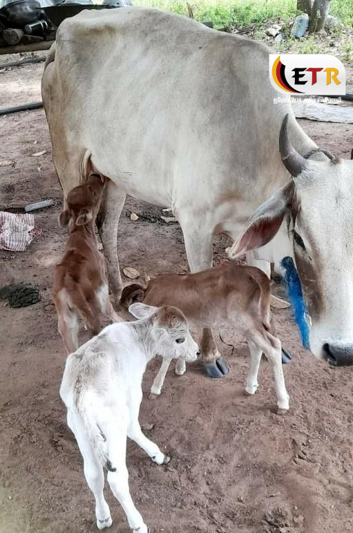 வவுனியால் பசு மாடு ஒன்று இயற்கைக்கு மாறாக மூன்று கன்றுகளை ஈன்றுள்ளது. பனையாண்டான் கிராமத்திலுள்ள பண்ணையாளரின் வீட்டில் இந்த சம்பவம் நடந்துள்ளது.