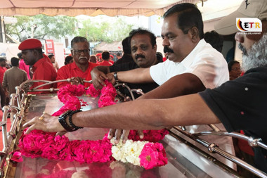 இந்தியாவில் தமிழ்நாட்டின் சென்னை சி.பி.ஐ. அலுவலகத்தில் வைக்கப்பட்டுள்ள இந்திய கம்யூனிஸ்ட் கட்சியின் மூத்த தலைவர் நல்லகண்ணுவின் உடலுக்கு பாராளுமன்ற உறுப்பினர் சிவஞானம் சிறிதரன் நேரில் சென்று அஞ்சலி செலுத்தினார். |