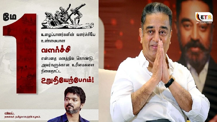 உலகநாயகன் நடிகர் மற்றும் மக்கள் நீதி மய்யம் கட்சியின் தலைவருமான கமல்ஹாசன் இன்று மே தின கொண்டாட்டம் குறித்து தனது வாழ்த்துக்களை சமூக வலைத்தளத்தில் தெரிவித்துள்ளார். அதேபோல் நடிகரும் தமிழக வெற்றிக் கழகத்தின் தலைவருமான விஜய்யும் தனது சமூக வலைதளத்தில் மே தின வாழ்த்துக்களை தெரிவித்துள்ளார் என்பது குறிப்பிடத்தக்கது