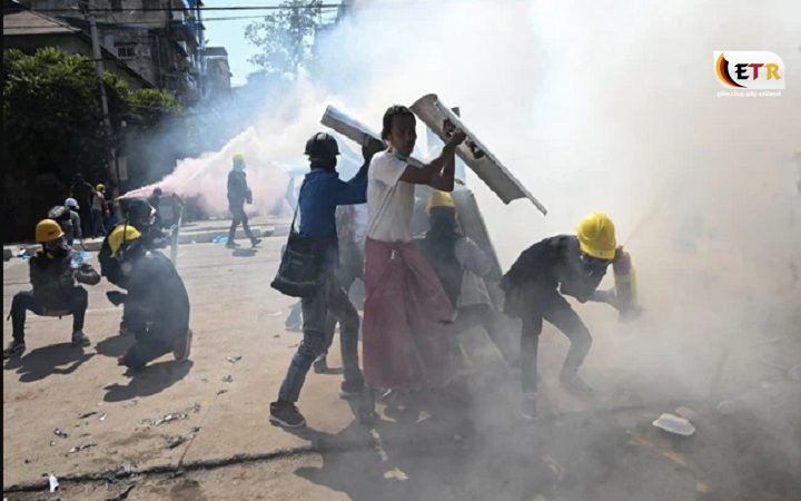 இதேபோல், தலைநகர் நேபிடாவிலும் சுமார் ஆயிரத்துக்கும் மேற்பட்ட போராட்டக்காரர்களை கண்ணீர்ப்புகைக் குண்டுகளை வீசி இராணுவத்தினர் விரட்டியடித்தனர்.