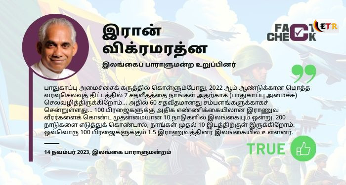 ஒவ்வொரு 100 பிரஜைகளுக்கும் 1.5 இராணுவத்தினர் : பாதுகாப்பு அமைச்சின் வரவு செலவுத்திட்டம் குறித்து எரான் கூறியது உண்மையா ?