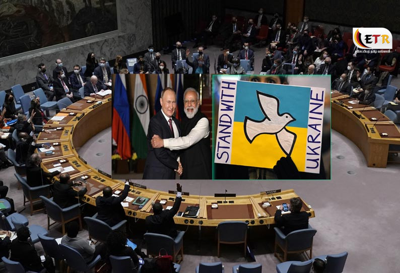 இந்நிலையில், உக்ரைன் மீது ரஷியா நடத்தி வரும் தாக்குதலுக்குக் கண்டனம் தெரிவிக்க ஐ.நா. சபையில் இன்று தீர்மானம் கொண்டுவரப்பட்டது. அமெரிக்கா கொண்டு வந்த தீர்மானம் மீது வாக்கெடுப்பு நடத்தப்பட்டது. அதில், 11 நாடுகள் தீர்மானத்துக்கு ஆதரவாக வாக்களித்தன. இந்தியா, சீனா, ஐக்கிய அரபு அமீரகம் ஆகிய 3 நாடுகள் வாக்கெடுப்பில் பங்கேற்கவில்லை.