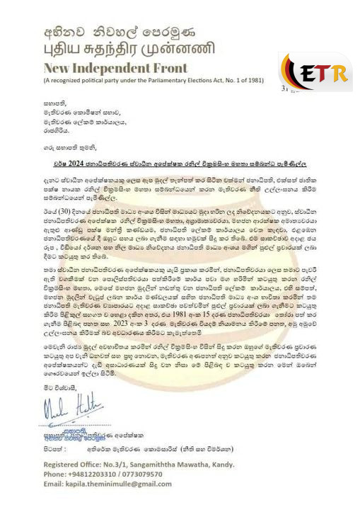 புதிய சுதந்திர முன்னணியின் தலைவரினால் இந்த முறைப்பாடு செய்யப்பட்டுள்ளது.