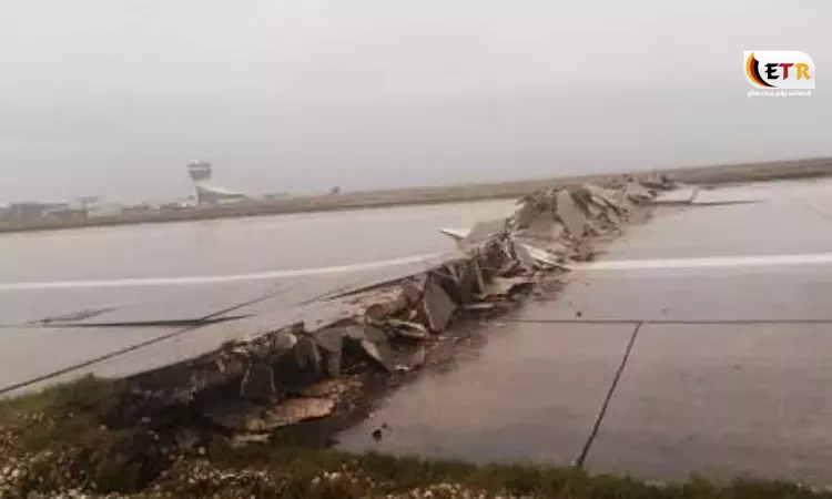 நிலநடுக்கத்தில் ரெண்டாக பிளந்த விமான ஓடுதளம்..