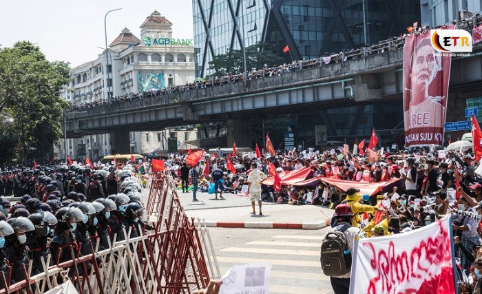 இதேவேளை, மியன்மாரில் இராணுவ ஆட்சிக்கு எதிர்ப்புத் தெரிவித்து போராட்டங்களில் ஈடுபட்டவர்கள் மீது பொலிஸாரால் மேற்கொள்ளப்பட்ட இறப்பர் தோட்டாக்களைப் பயன்படுத்திய தாக்குதலில் பலத்த காயமடைந்த பெண்ணொருவர் கவலைக்கிடமாக உள்ளதாக மருத்துவமனை வட்டாரங்கள் தெரிவித்துள்ளன. அத்துடன் மற்றொருவரும் காயத்துக்கு உள்ளாகியுள்ளார்.