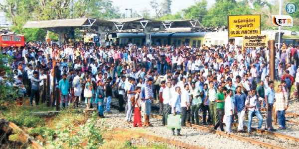 மின்சார ரயிலை மறித்து பயணிகள் போராட்டம்